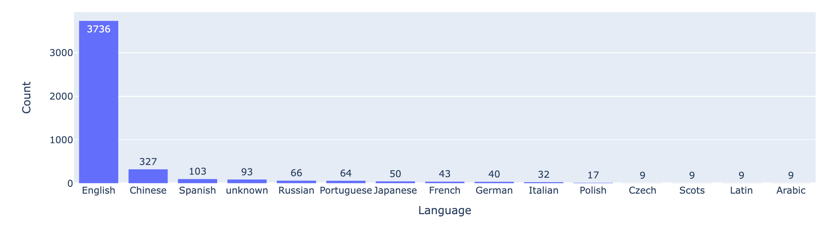 Figure 3 plots the language distribution and shows most user prompts are in English.
