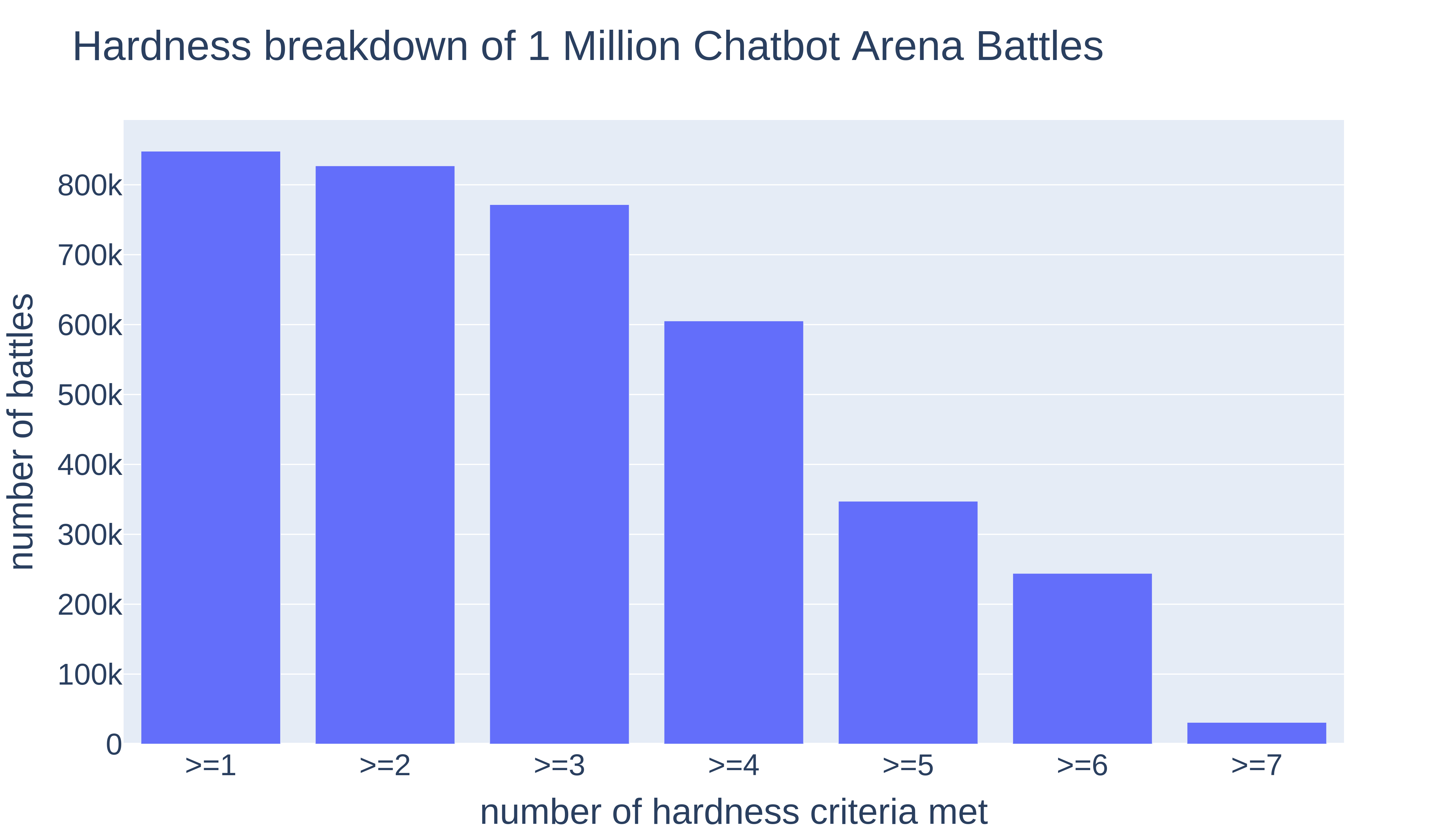 Figure 4. The percentage of prompts with different hardness score within 1 million Chatbot Arena data.