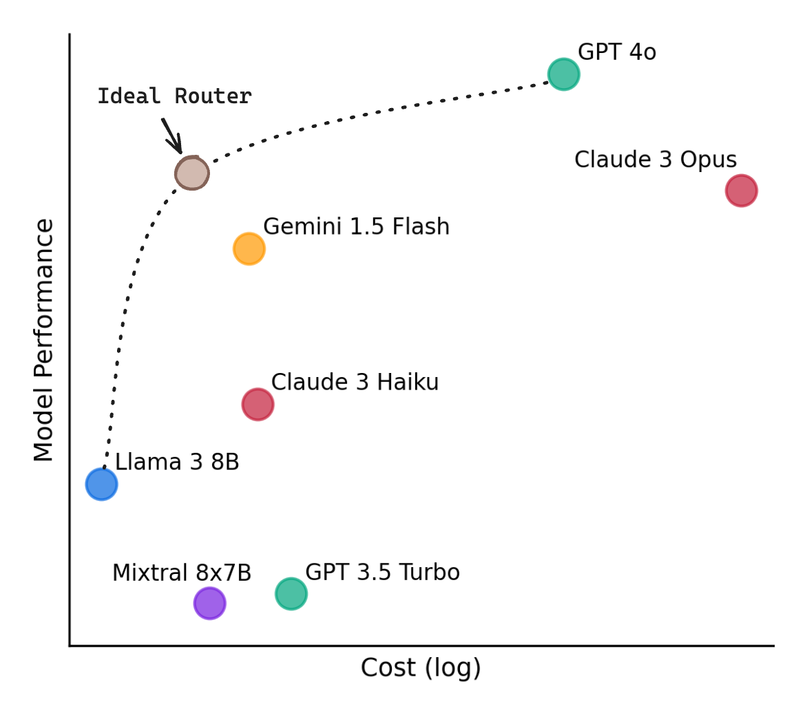 LLMs have demonstrated remarkable capabilities across a range of tasks, but there exists wide variation in their costs and capabilities, as seen from the plot of performance against cost in Figure 1. Very broadly, more capable models tend to be more expensive than less capable models. This leads to a dilemma when deploying LLMs in the real-world - routing all queries to the largest, most capable model leads to the highest-quality responses but can be expensive, while routing queries to smaller models can save costs but may result in lower-quality responses.