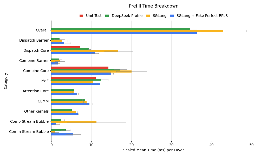 The figure below breaks down kernel execution times for prefill, including unit test results as a theoretical upper bound: