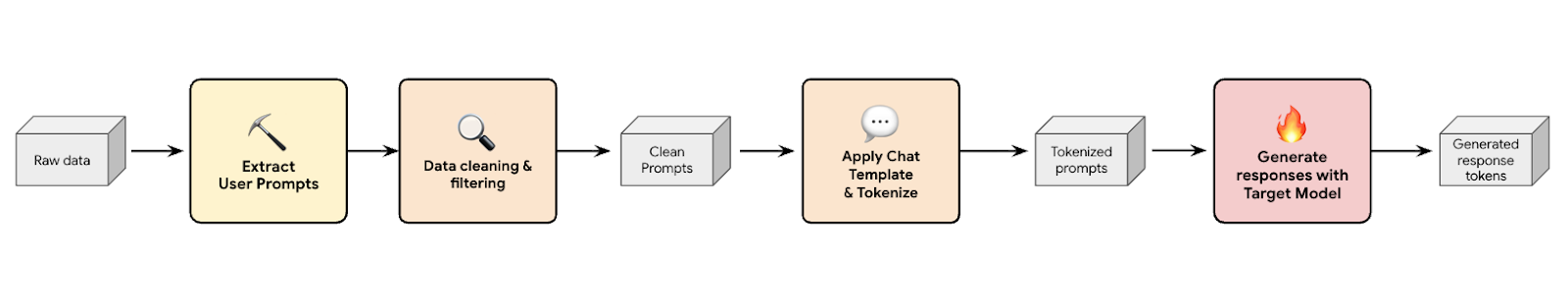 One solution is to build a synthetic data generation pipeline. Depending on our customer's use cases, we select the right dataset not only with good-quality but also matches best with our customer's production traffic for various different workloads. Then you can extract only the user prompts from these datasets and apply rigorous DLP (Data Loss Prevention) and PII filtering. These clean prompts apply a chat template, tokenize them and then they can be fed into your target model (e.g., Llama 3.3 70B) to collect its responses.