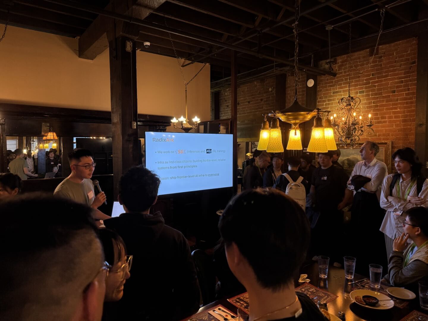 On Tuesday evening, SGLang and RadixArk co-hosted a GTC Happy Hour that brought together builders, researchers, and founders from across the inference and training ecosystem, including friends from OpenAI, xAI, DeepMind, Meta, NVIDIA, Ollama, and more.